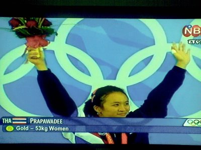 PostFirst Thai Gold MedalPublished August 10, 2008Updated November 25, 2010Blog PostGood to see Thailand on the board with a Gold from Ms. Prapawadee in weight lifting. Her mom passed out during the competition.. hope she's ok.