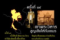 In one of many frames you can see the area given away, and the king who was in power at the time. This one depicts loosing the Lao and Cambodian regions.The last frame depicts the current loss of land, that has led to this latest step down by the Foreign Minister.