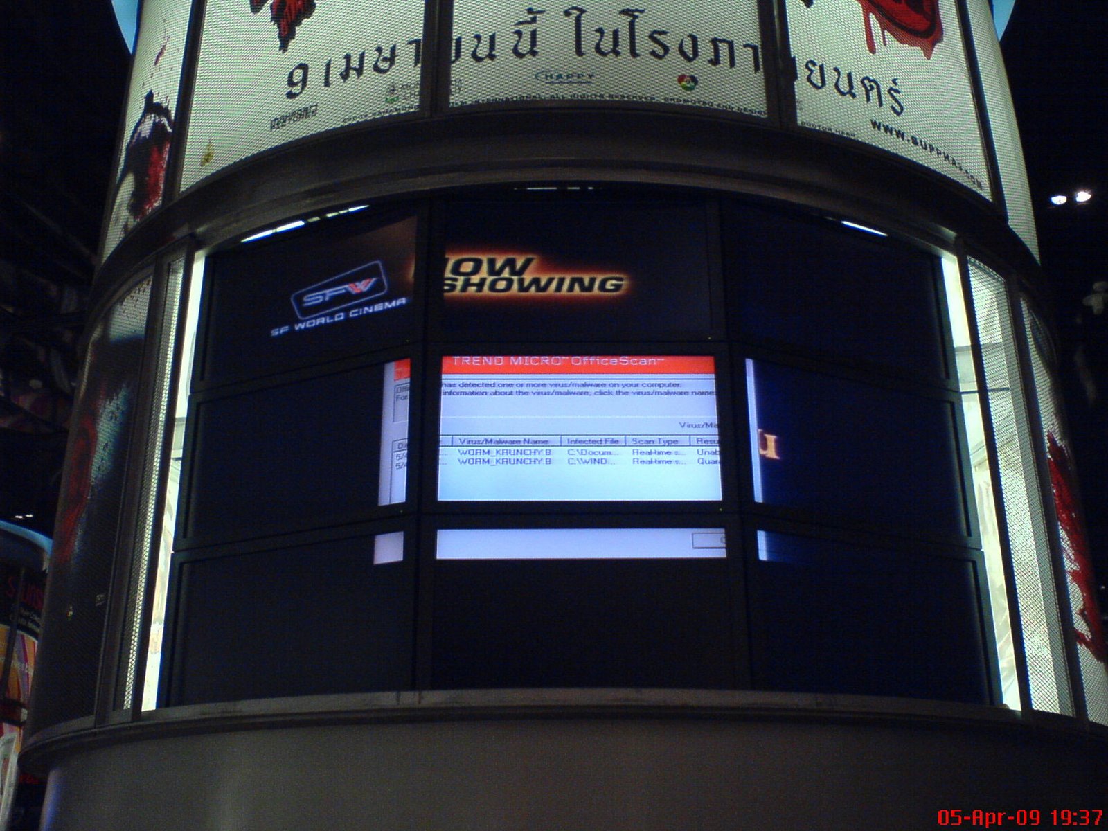 PostSF World Cinema FailPublished April 6, 2009Updated November 25, 2010Blog PostSF World Cinema Fail captured by Thanh-BKK. One thing to have a virus scan, another to be infected by a worm.