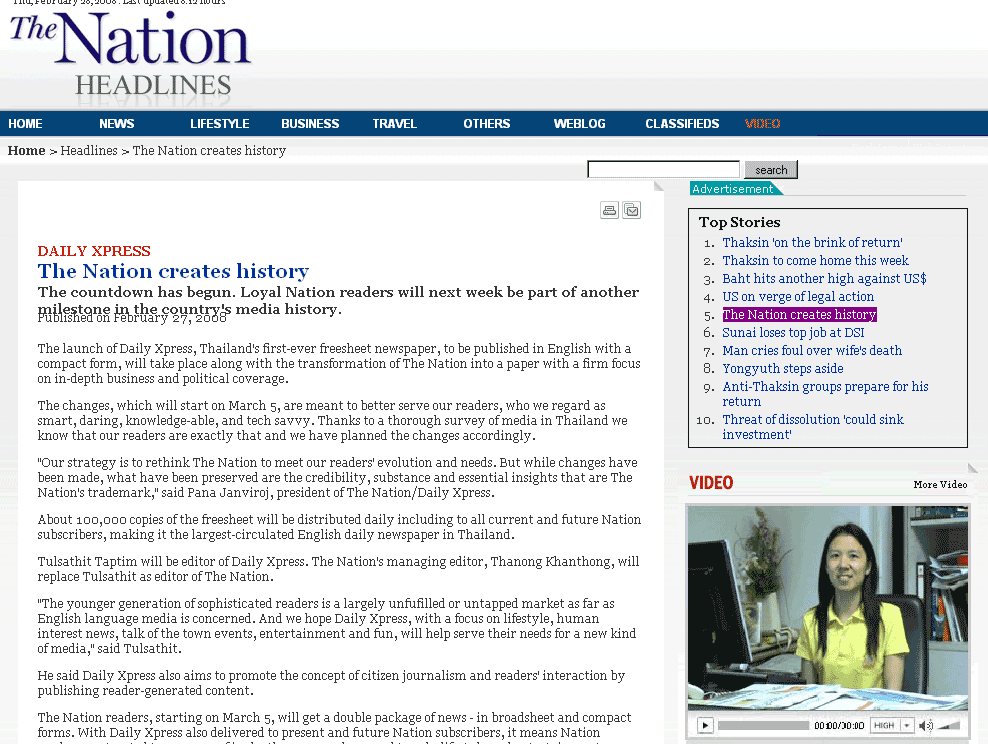 ...an audited circulation of 100,000 copies daily, will debut tomorrow morning, with distribution all over Bangkok and in Pattaya, Phuket, Chiang Mai, Hua Hin and Koh Samui.