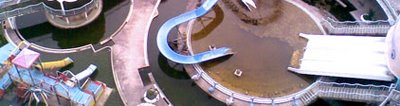 Taksin's Red Shirt movement. Want to buy a framed panoramic photo of the Red Shirt gathering at Ramkamhenag Stadium, this is the place.After trying a few stair wells, there was an opening thru the generator room and boom in all it's glory.. the defunct water park. Anyway have a look at the now rotting away amusement park and think Scooby Doo thoughts.