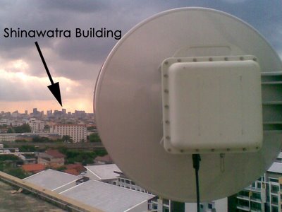 Also of interest on the Big C roof top, is this microwave dish, pointed directly at the Shinawatra Building you can see in the distance. A good way to dial into your head office.