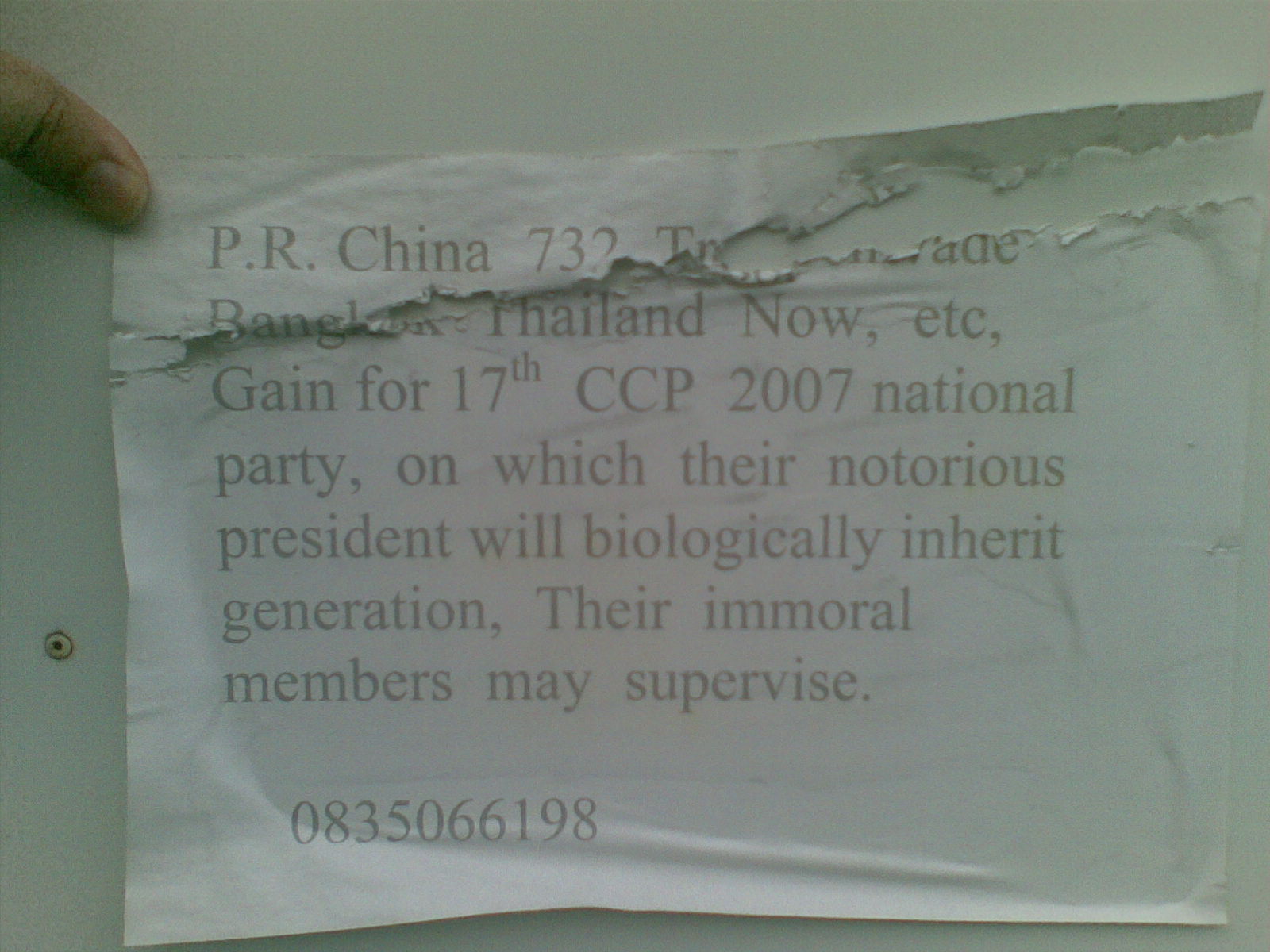 PostWeird note on a Thai street.Published October 21, 2007Updated November 25, 2010Blog PostTheir immoral members may supervise.